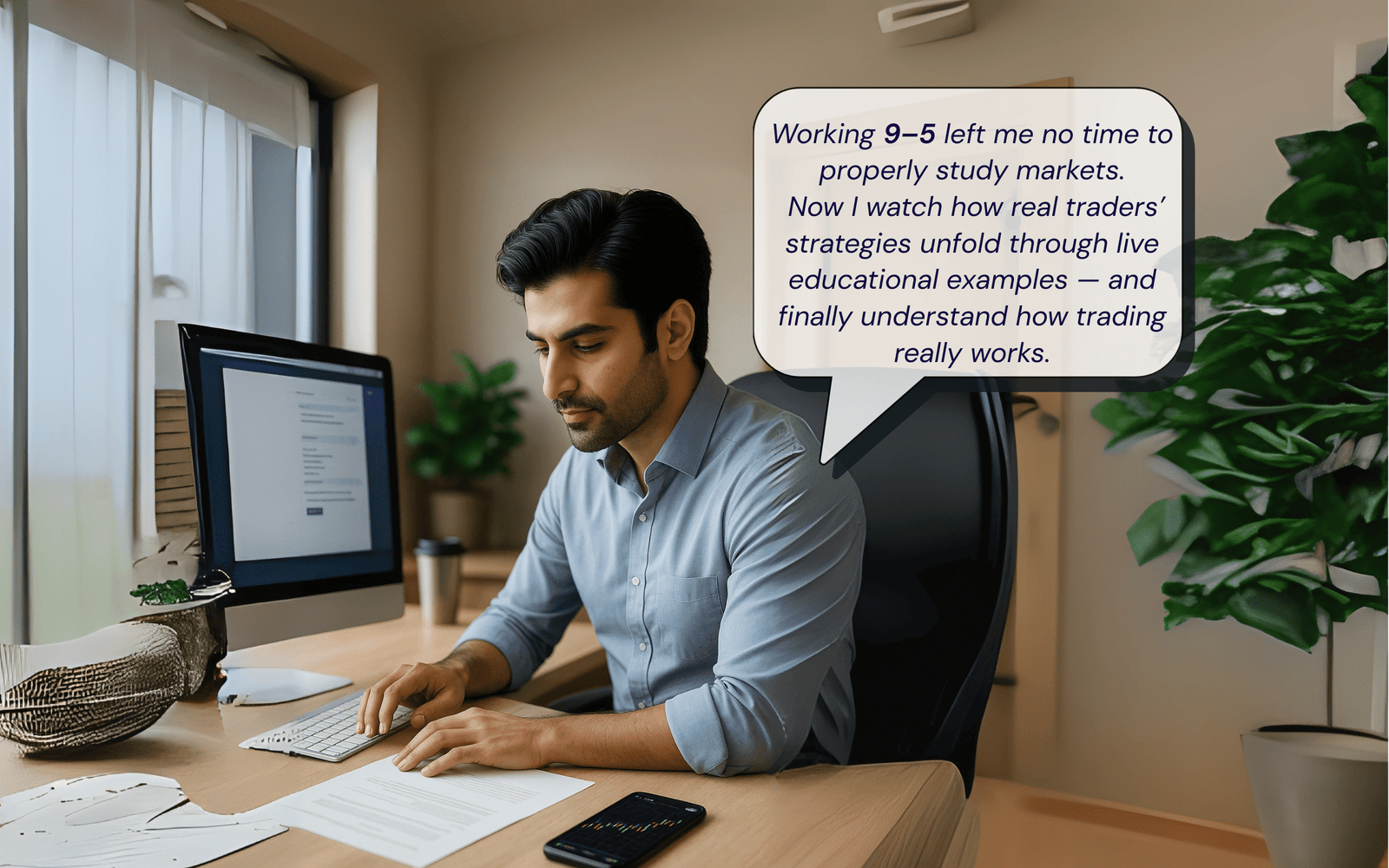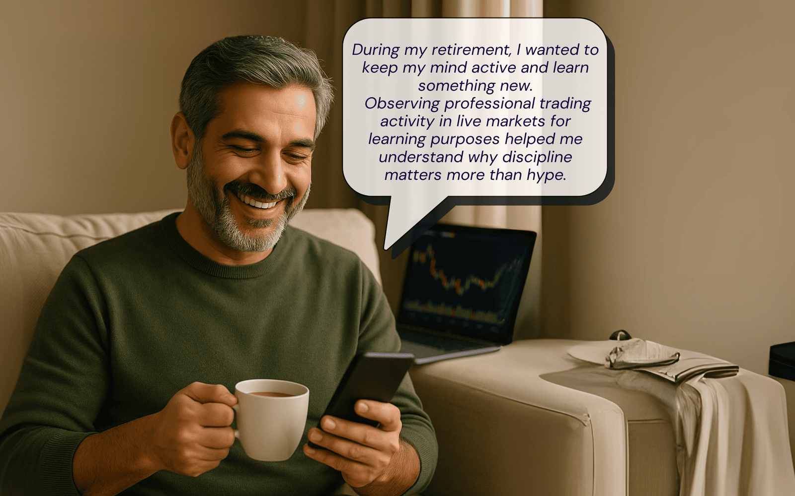Observe how professional traders analyze and execute in real markets — all in your own account, under your full control.
